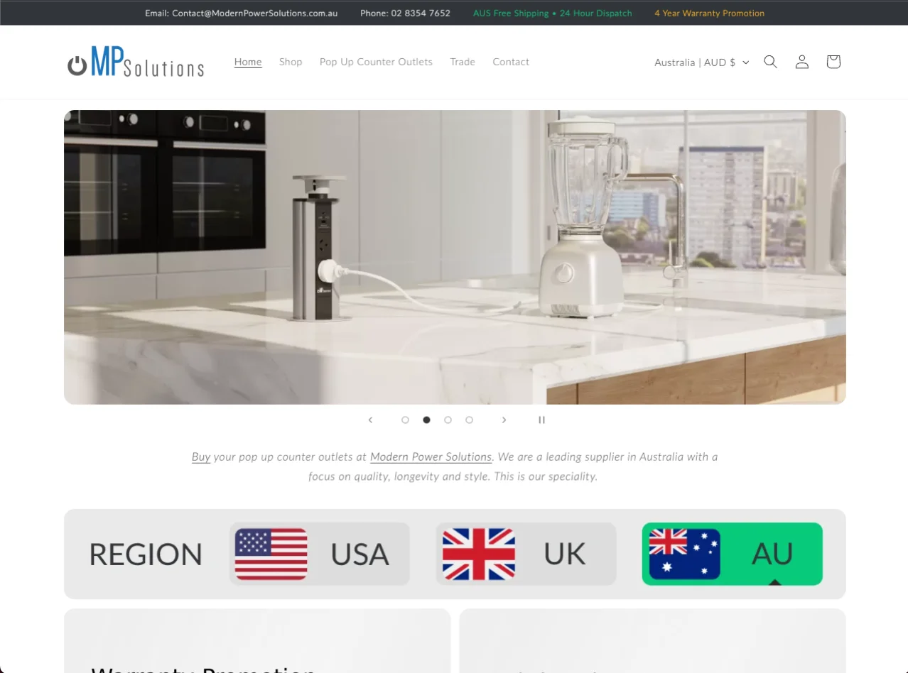 Today, Modern Power Solutions operates around the world with a focus in the United States, United Kingdom and Australia. It’s a specialty business, to enable the continued development of the best possible pop up power outlets for kitchens.